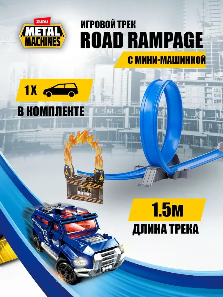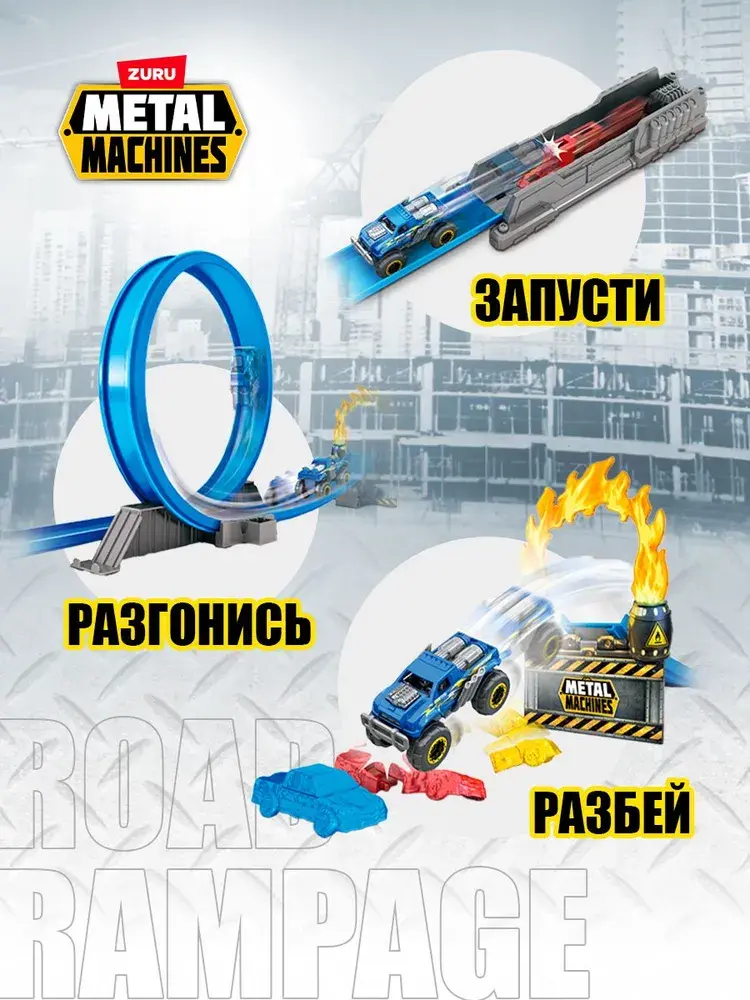 Набор с треком ZURU «Дорожная ярость» (6701) полон экшена и разрушений! Запусти свою машинку Bone Crusher с помощью мощного механизма запуска, промчись через петлю в 360 градусов и перепрыгни через машины — или на них, чтобы разбить их вдребезги! Не переживай, ты сможешь собрать их обратно, чтобы попробовать новые трюки и каскадерские приемы! • Мощный механизм запуска: мощный пусковой механизм отправляет твои машинки в захватывающее путешествие по треку! Заблокируй запускатель в готовом положении и отпусти, чтобы твоя машина взревела и помчалась вперед. • Трамплин для трюков и петля: в набор входит трамплин для трюков, который позволяет твоему монстр-траку перепрыгивать каскадерские машинки! После головокружительного спуска по треку твоя машинка проходит петлю, включая переворот вверх тормашками, а затем взлетает с трамплина через огонь. • Огромный трек: огромный трек длиной 2 метра гарантирует нескончаемое веселье! В комплект входит эксклюзивная машинка Bone Crusher. • В набор входит: 1 металлическая машинка, 1 мощный механизм запуска, 1 гоночный трек с петлей 360° и трюковым трамплином, 3 разрушаемые каскадерские машинки