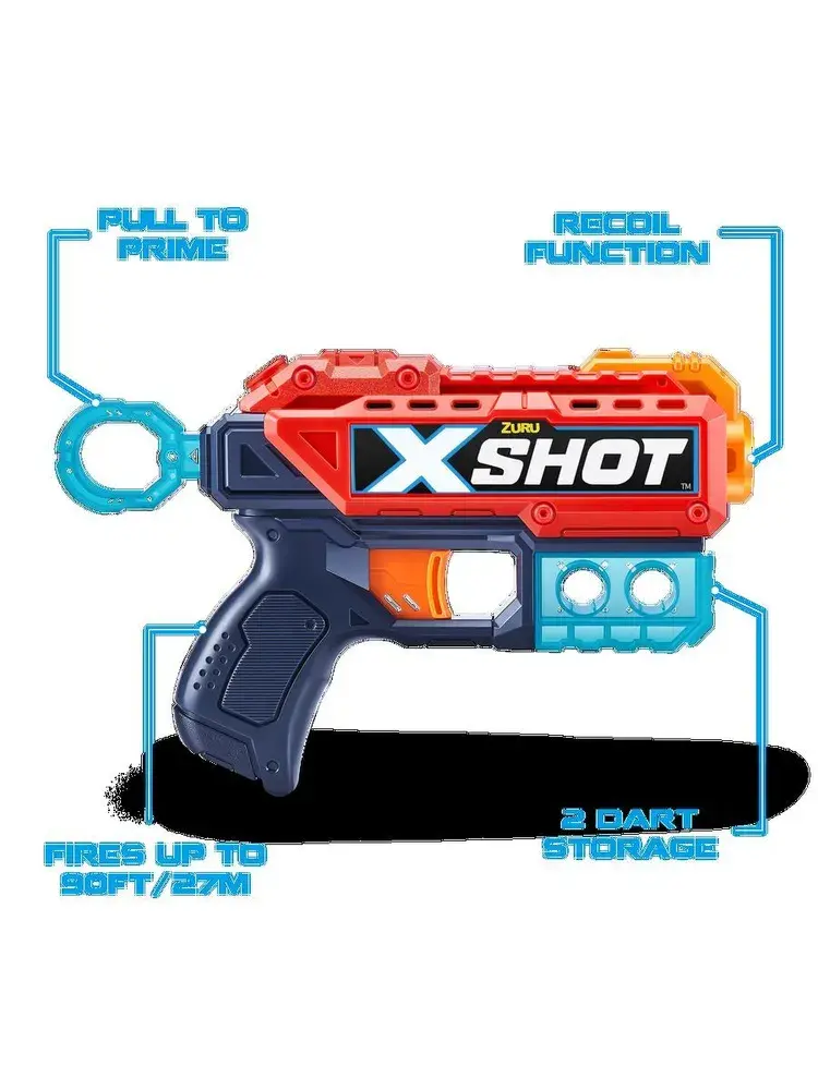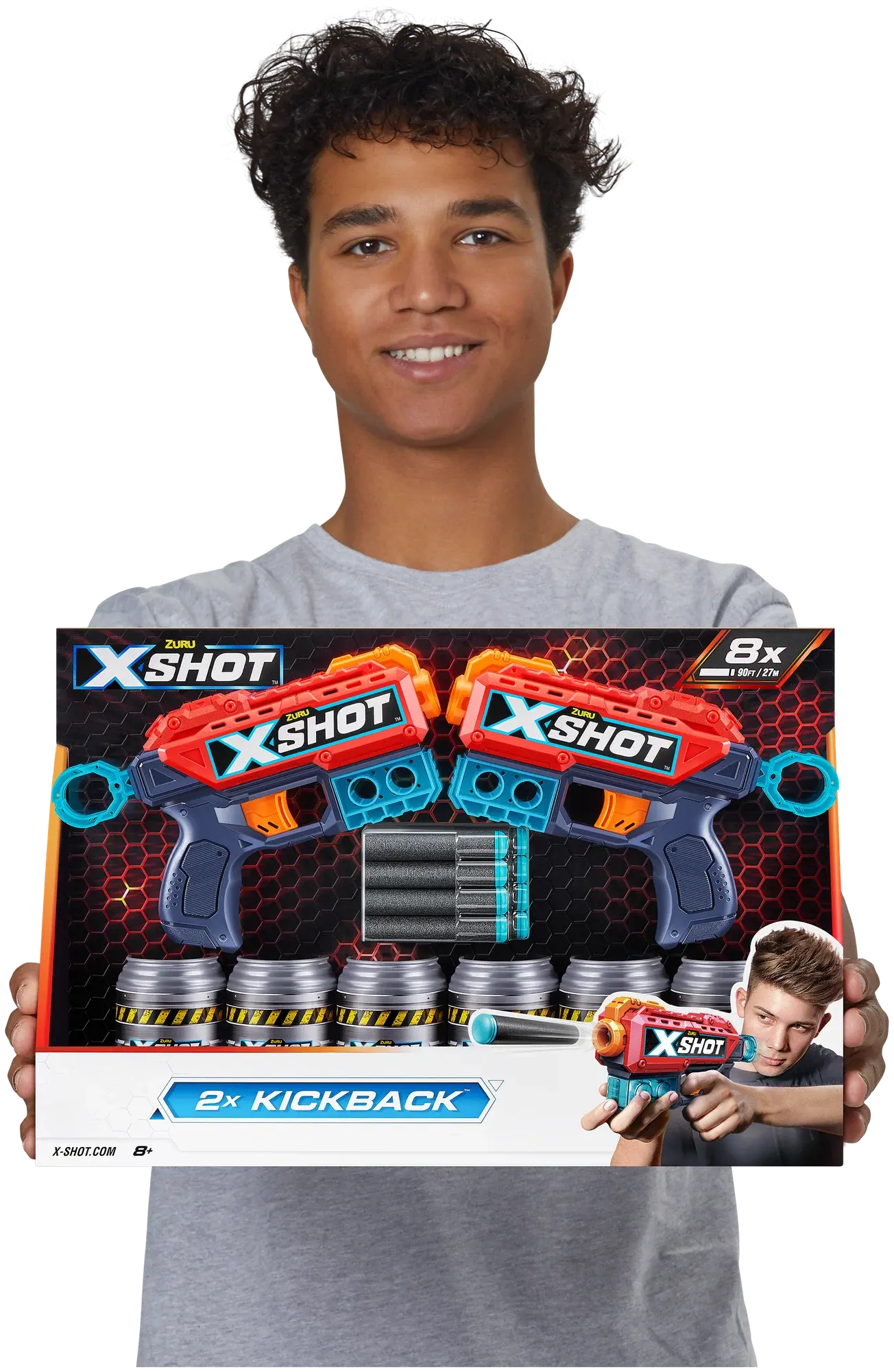 Набор бластеров «Дабл Кикбек» от Zuru X-Shot— это двойная отдача! Можно поделиться оружием с другом и устроить захватывающее сражение. Компактный и динамичный, он отлично лежит в руке. Дополнительное крепление для двух стрел на корпусе позволит быстро произвести перезарядку.Дальность выстрела— до 27 метров. В комплект входит 8 пулек и 6 мишеней в виде банок. Подойдет детям от 3 лет.
