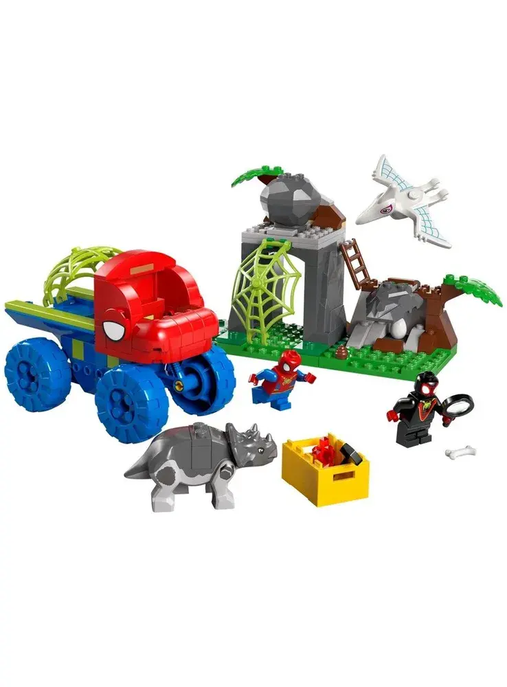 Минифигурки: Спайди, Майлз «Спин» Моралес, Паук-Призрак (в образе птеродактиля), Носорог (в образе трицератопса).