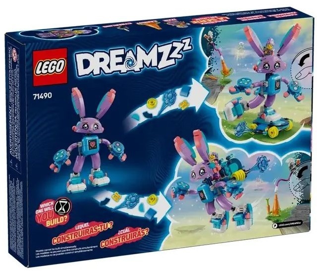 71490 Конструктор LEGO DREAMZzz Izzie and Bunchurro the Gaming Bunny Иззи и Банчурро игровой кролик 252 детали Окунитесь в захватывающее приключение с этим конструктором LEGO DREAMZzz «Иззи и Банчурро — игровой кролик» (71490) для детей. Вдохновленная захватывающим телесериалом игрушка раскрывает воображение, когда девочки и мальчики в возрасте от 7 лет и старше помогают героине Иззи спасти Мечтающую морковь (Dreamling Carrot) от Киберлинга (Cyberling). Игрушка для развития воображения: раскройте творческие способности детей с помощью конструктора LEGO DREAMZzz Izzie and Bunchurro the Gaming Bunny для девочек и мальчиков, который включает в себя 2 режима сборки. 1 набор, 2 приключения: юные мечтатели собирают игрушечного кролика, а затем дополняют его скейтбордом и ускорителями или реактивным ранцем. Минифигурка LEGO: героиня Иззи, которая прикрепляется к Бунчурро, оживляет действие и поощряет творческую ролевую игру. Игрушки мечты: в фэнтезийный набор «ЛЕГО» также входят Киберлинг и Мечтающая морковь, что позволяет детям разыгрывать всю историю по ролям. Расширьте веселье: в набор входят модульные элементы, которые можно прикрепить к другим наборам (продаются отдельно) серии LEGO DREAMZzz 2025. Подарок в виде кролика: игровой набор с животным станет подарком для детей, которые любят сериал LEGO DREAMZzz, а также для юных геймеров и любителей животных. • Размеры: в набор входит 252 детали, а при варианте сборке со скейтбордом модель кролика имеет размеры более 18 см в высоту, 12 см в ширину и 9 см в глубину.