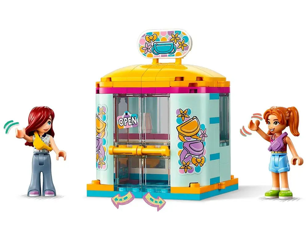 В набор входят 2 минифигурки LEGO® Friends: Пейсли и Кэнди, магазин, интересные аксессуары, в том числе две поясные сумки.