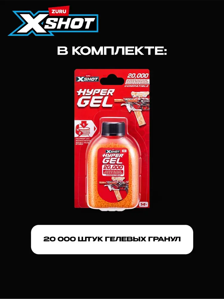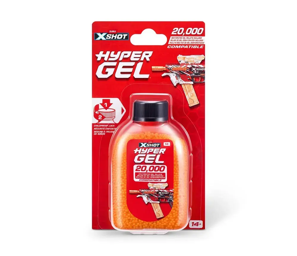 Снаряды для бластера ZURU X-Shot HYPERGEL 20000шт. Никогда не упустите возможность воспользоваться этой удобной сменной упаковкой Hyper Gel Pellet на 20 000 штук! Гранулы XSHOT Hyper Gel нетоксичны, экологически безопасны и не оставляют пятен. Просто добавьте воды для увлажнения и начните взрывное веселье. Поставляется в закрывающемся контейнере для удобства хранения.